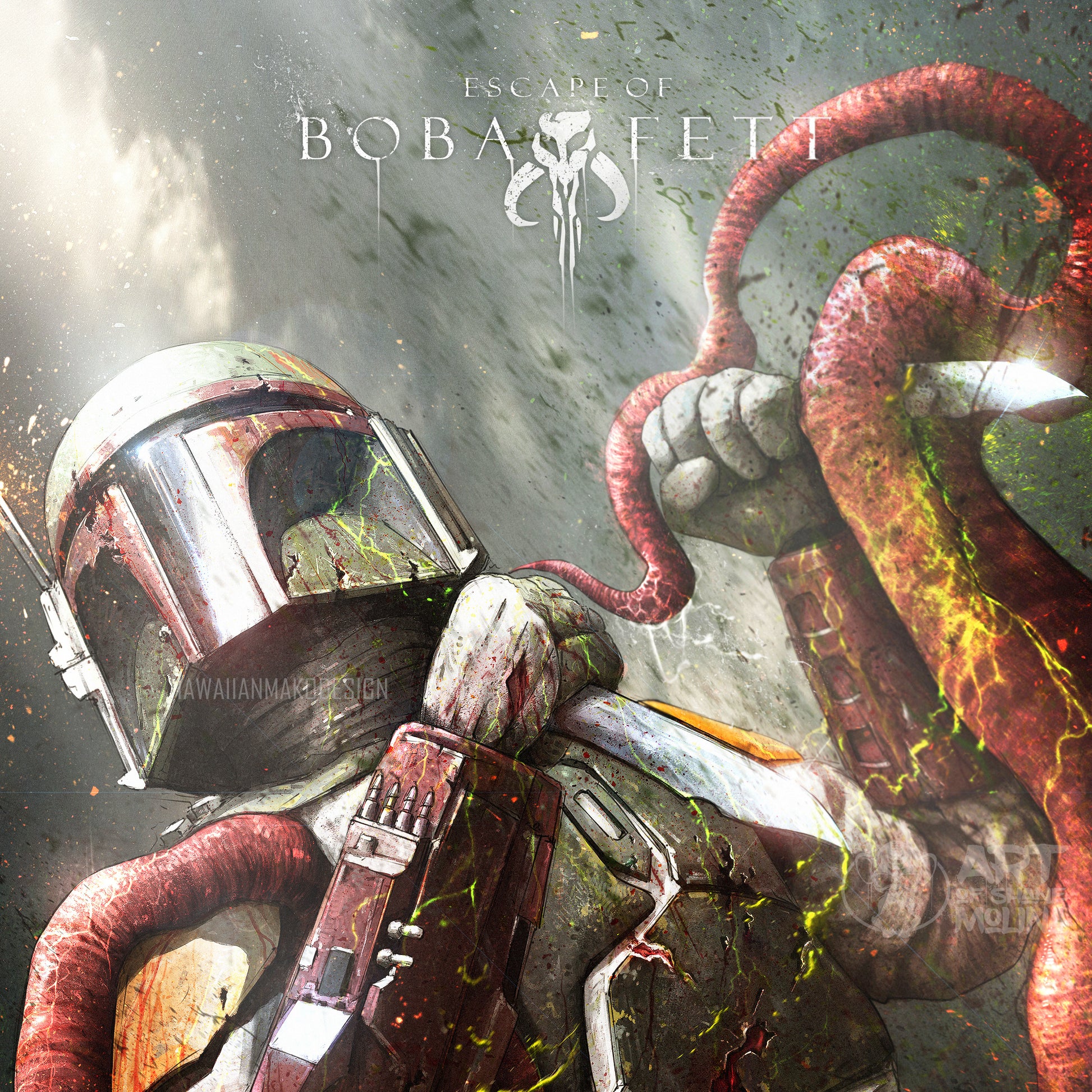 The fearless bounty hunter rips his way out of the sarlacc pit!