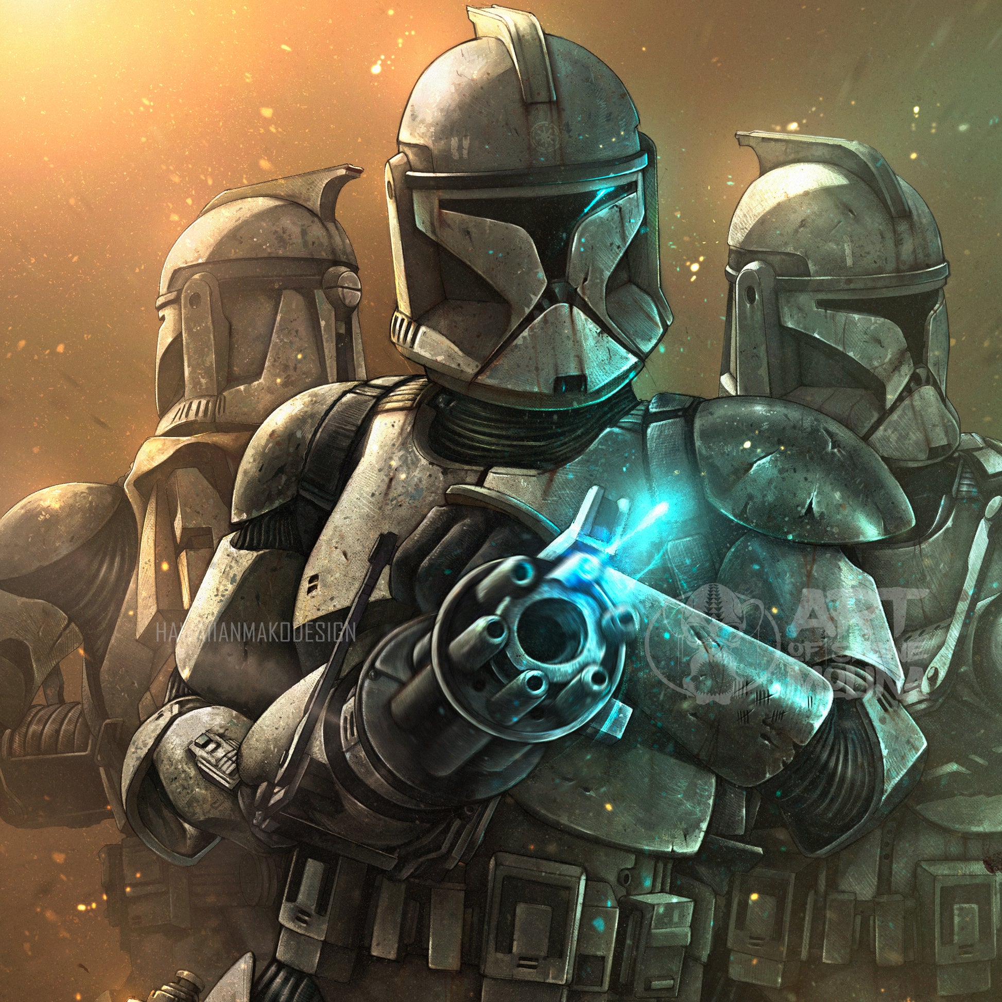 These phase one clone troopers know the battle far too well. They continue to press forward with speed and power against the droid army.